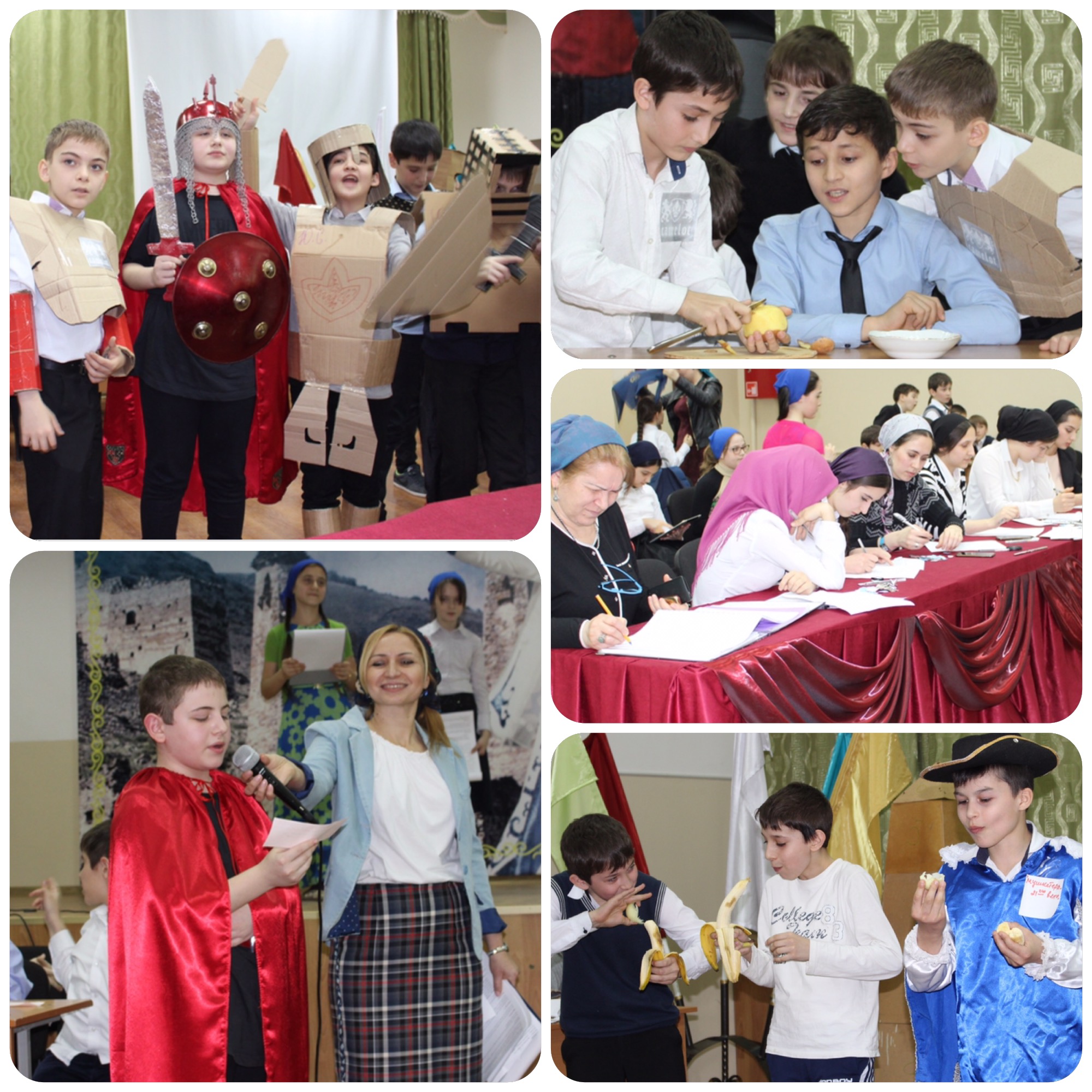 Учащиеся 5-6 классов проявили себя в следующих конкурсах: "Самый ловкий", "Самый хозяйственный", "Самый спокойный", "Самый мужественный", "Самый бесстрашный и мудрый", "Самый знающий", "Самое лучшее письмо", "Самый быстрый", "Искусство владения шпагой" и "Самый обаятельный". Членами жюри выступили ученицы 10 "в" класса. По итогам всех конкурсов третье место заняла команда 6 "а" класса, второе - 5 "б", а первое место - мальчики 6 "в" класса!