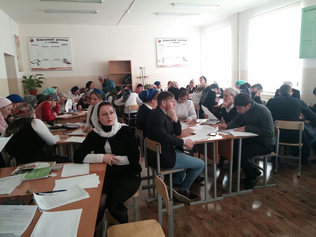 Педсовет прошел в очень интересной форме. Завуч по учебно-воспитательной работе Раиса Садуева разделила всех присутствующих учителей на пять групп, каждая из которых получила вопросы и свое индивидуальное задание, а именно список жанров, при помощи которых нужно было ответить на заданные вопросы. Жанры были следующими: сценарий мультфильма, сказка, статья в книгу рекордов Гиннесса, протокол допроса, рассказ родителям. Каждая группа педагогов после истечения десети минут произвела презентацию своих ответов в одном из жанров. Ответы получились очень интересными, занимательными и эффективными. И это только малая часть большого и насыщенного педсовета.