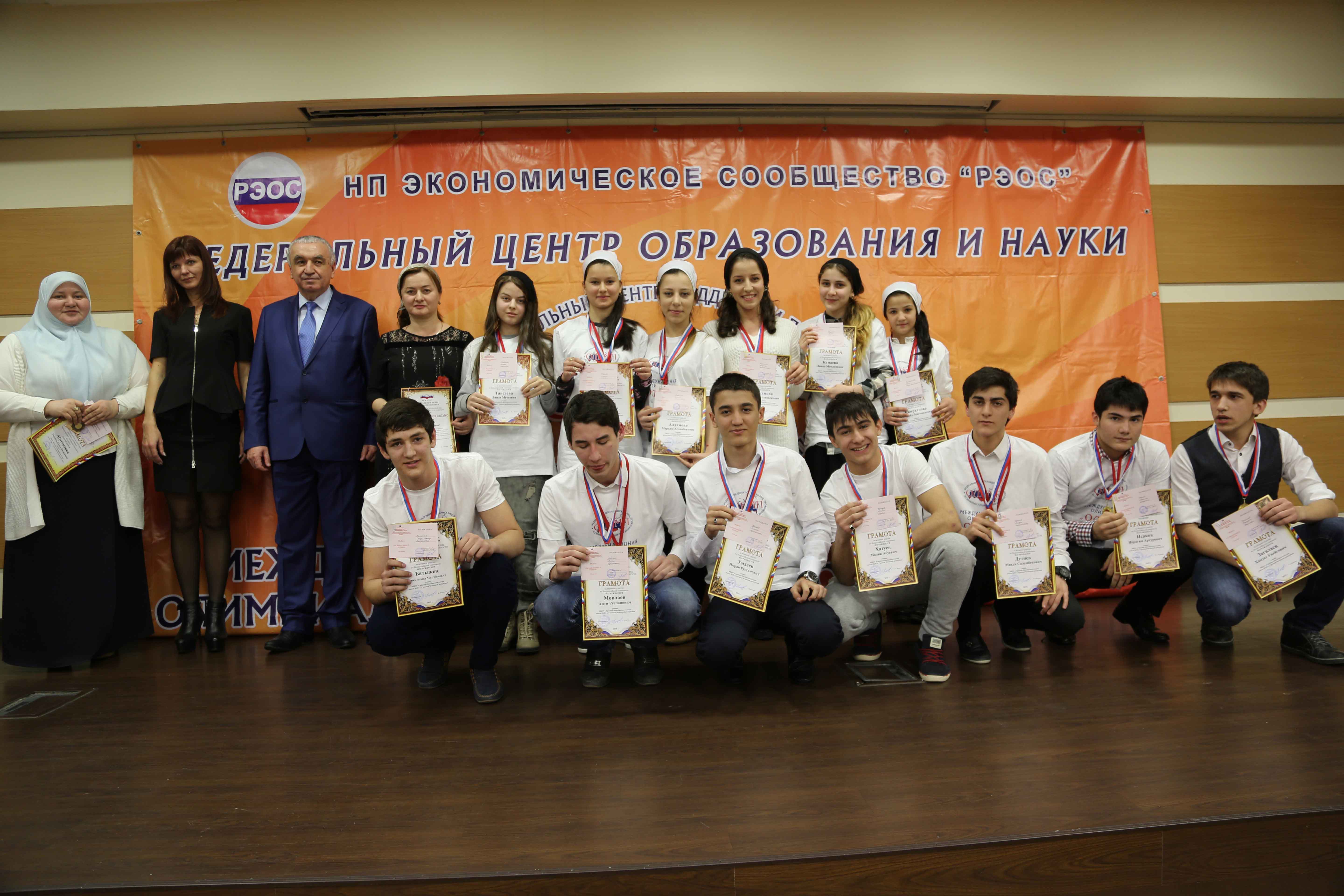 В данной олимпиаде от нашей школы приняли участие 13 ребят, и все они получили грамоты за активное участие в Олимпиаде. А трое из них в своих возрастных категориях стали победителями Международной олимпиады: вторые места заняли ученик 11 "А" класса Саид-Ахмед Батыжев и ученик 10 "Б" класса Ибрагим Исаков, третье место - ученица 11 "А" класса Марьям Алдамова. Ученики были награждены дипломами и медалями. Директор школы Марина Газиева и учитель русского языка и литературы Мадина Абуезидова также были награждены грамотами и медалями. А нашей школе было выдано Свидетельство о включении в общероссийскую базу "1000 лучших школ (ОО) России"!