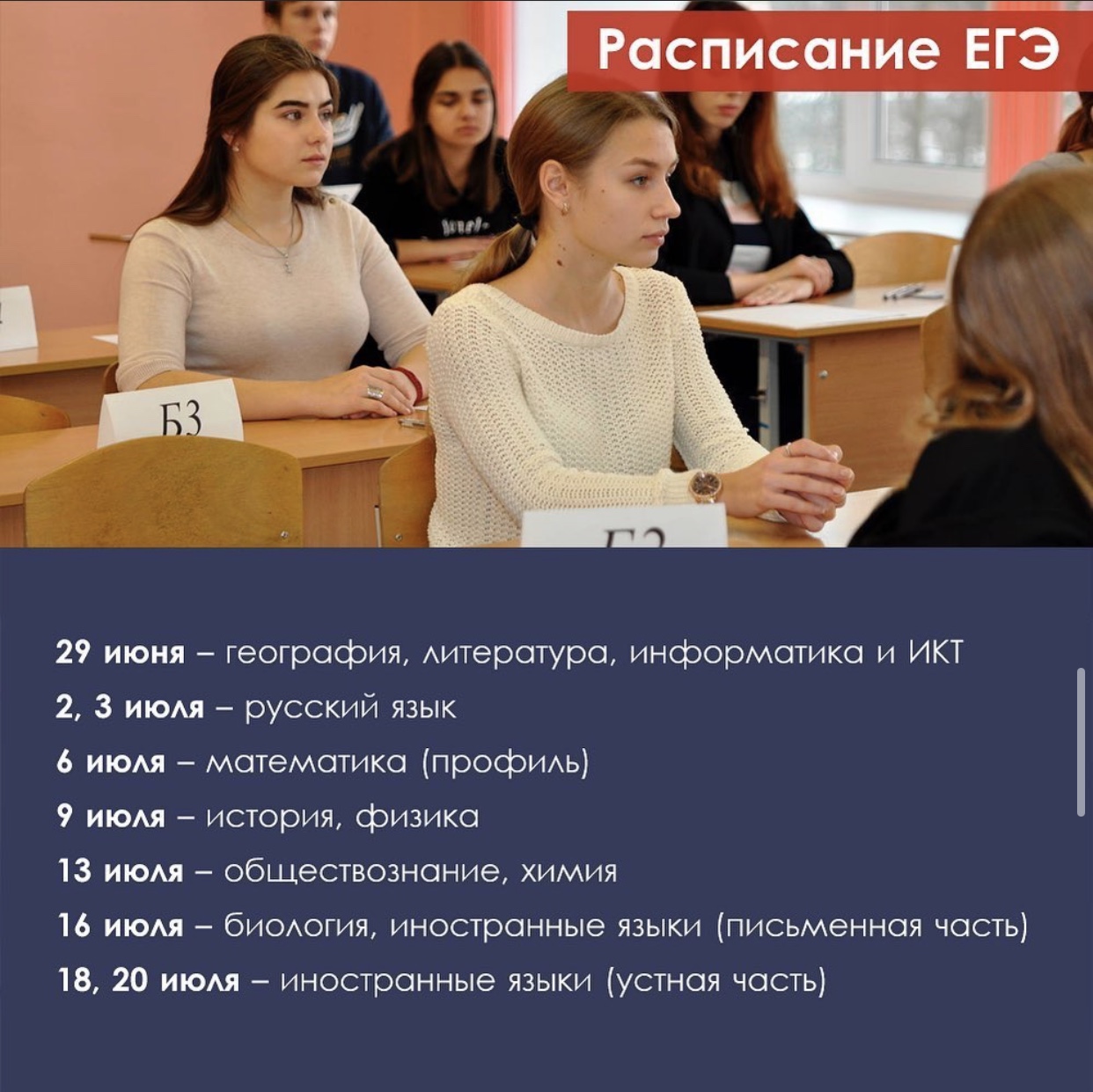 В указанные даты экзамены будут сдавать участники, зарегистрированные как на основной, так и на досрочный период. Напоминаем, ЕГЭ в этом году сдают только те, кто планирует поступать в вуз.
