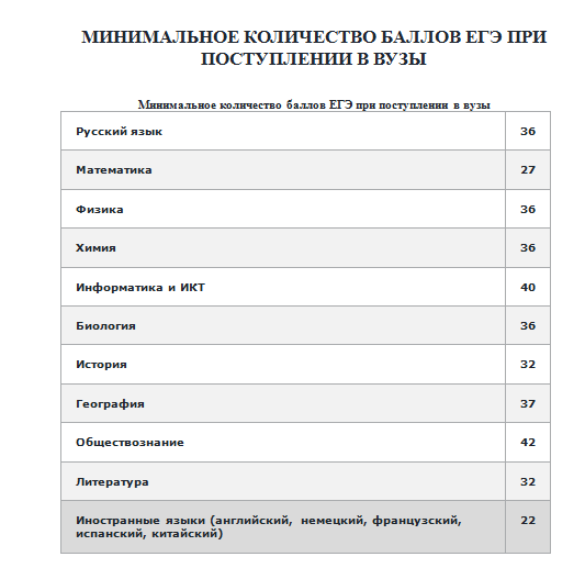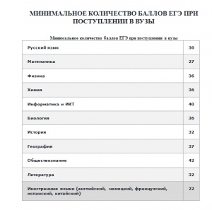 МИНИМАЛЬНОЕ КОЛИЧЕСТВО БАЛЛОВ ЕГЭ ПРИ ПОСТУПЛЕНИИ В ВУЗЫ