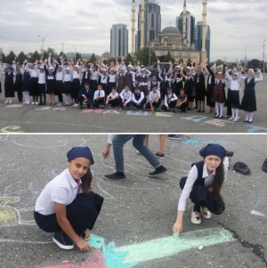 Ученики 5-6-х классов нашей школы приняли участие в Конкурсе рисунков на асфальте "В единстве- сила".