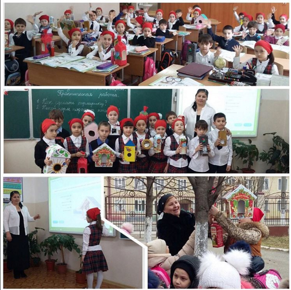 В школе проходят уроки окружающего мира на тему "Как зимой помочь птицам". Ребята мастерят самые разные кормушки для пернатых и наполняют их различным кормом.