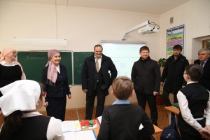 Гостей встретила директор школы Марина Газиева, которая показала им восстановленную школу. Рамзан Кадыров и Сергей Меликов прошлись по кабинетам, где шли учебные занятия, поговорили с учителями и учениками школы. Полпред поинтересовался, как проходит учебный процесс у директора школы Марины Газиевой. Меликов пригласил М. Газиеву на конференцию, посвященную 200-летию со дня рождения М.Ю. Лермонтова, которая состоится в г. Пятигорске в марте текущего года. Он также отметил, что в дар школе будет передан сборник произведений М.Ю. Лермонтова.