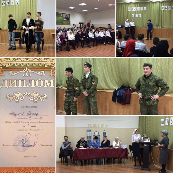 01.03.2017В школе состоялся проект "Къонах-2017". Ребята из 8-11-х классов проявили себя в таких конкурсах, как "Лучшее чтение Суры", "Нохчийн г1иллакхш" и других.