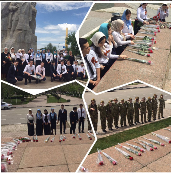 08.05.2017Наши учащиеся во главе с директором Петимат Барахановой провели акцию "Дорога к обелиску", возложив цветы к памятнику Трех Героев.