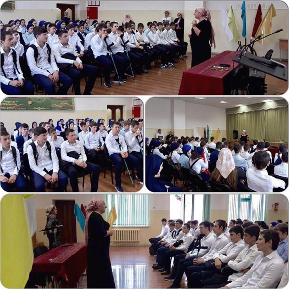 Сегодня директор школы Петимат Бараханова провела беседу с учащимися старших классов, на которой она с ребятами обсудила выполнение протокольных поручений и Устава школы.