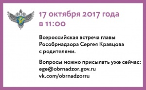 10.10.201717 октября руководитель Федеральной службы по надзору в сфере образования и науки Сергей Кравцов проведет Всероссийскую встречу с родителями.