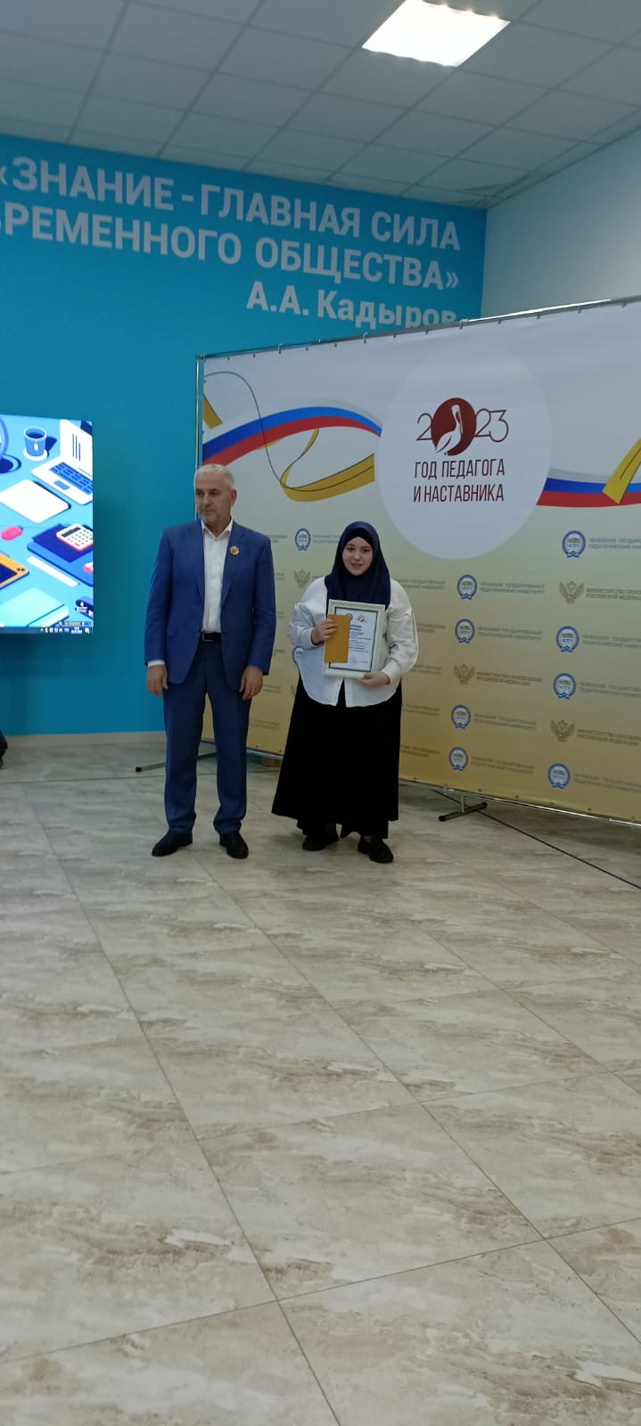 Также в номинации «Выпускник педагогического класса 2023 года» победила ученица Цоци-Юртовской школы № 1 Мата Хамерзаева. Второе место занял ученик Новосолкушинской школы Али Курбанов, третье место досталось Имаму Арсаеву — ученик Цоци-Юртовской школы № 1.