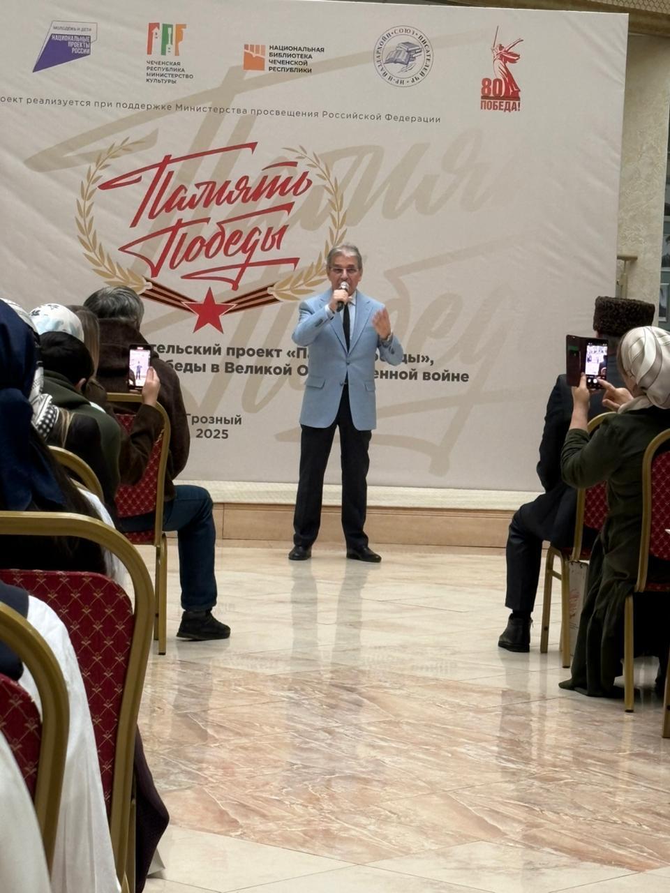 18.12.2025В рамках мероприятий приуроченных к 80-летию Победы, в Национальной библиотеке им. А.А.Айдамирова провели литературный фестиваль «Память Победы». В мероприятие принимали участие общественные деятели, члены общественной палаты,преподаватели поэты, студенты, уч-ся СОШ 20 г. Грозного, уч-ся Алхан-Калинской СОШ 3, а также гости с Ингушетии, с Кабардино- Болгарии. В ходе мероприятия выступили преподаватели Вуза. прозвучали стихи чеченских и ингушских поэтов. Завершилось мероприятие музыкальными номерами в исполнение Али Димаева. Мероприятие прошла в тёплой и искренней атмосфере.