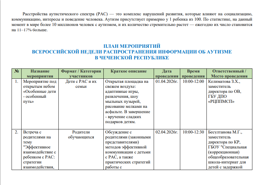 Идея. Фестиваль — это сеть мостов между людьми с РАС, их семьями, специалистами, государством, бизнесом и широкойаудиторией. Мы строим мосты между теми, кто ищет поддержку, и теми, кто может её дать. Между семьей и специалистами,школой и профессией, мечтой и реальностью. Здесь у каждого есть путь — от ранней диагностики к обучению, работе исамостоятельной жизни.Миссия. Формировать инклюзивное общество, где люди с аутизмом — равноправные участники жизни. Продвигатьдоказательные практики (ПАП, PECS и др.) и создавать условия для непрерывного сопровождения через всю жизнь.