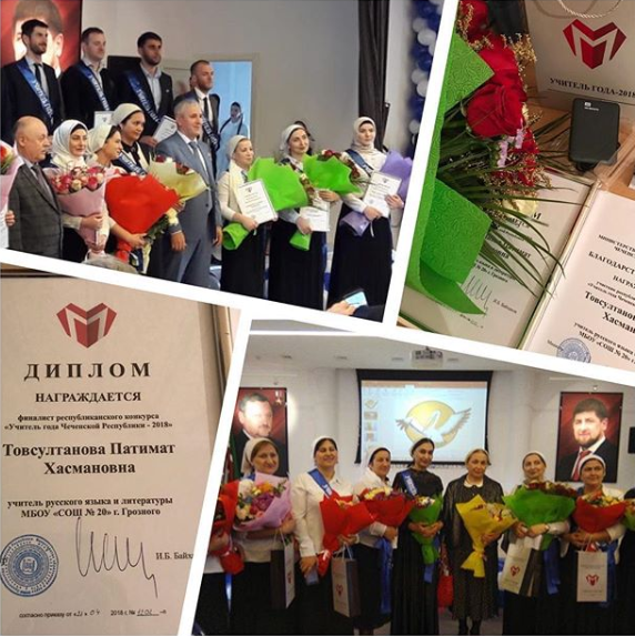 03.05.2018Сегодня состоялось награждение финалистов и победителей Республиканского конкурса «Учитель года - 2018». Поздравляем еще раз нашего учителя русского языка и литературы Патимат Товсултанову!