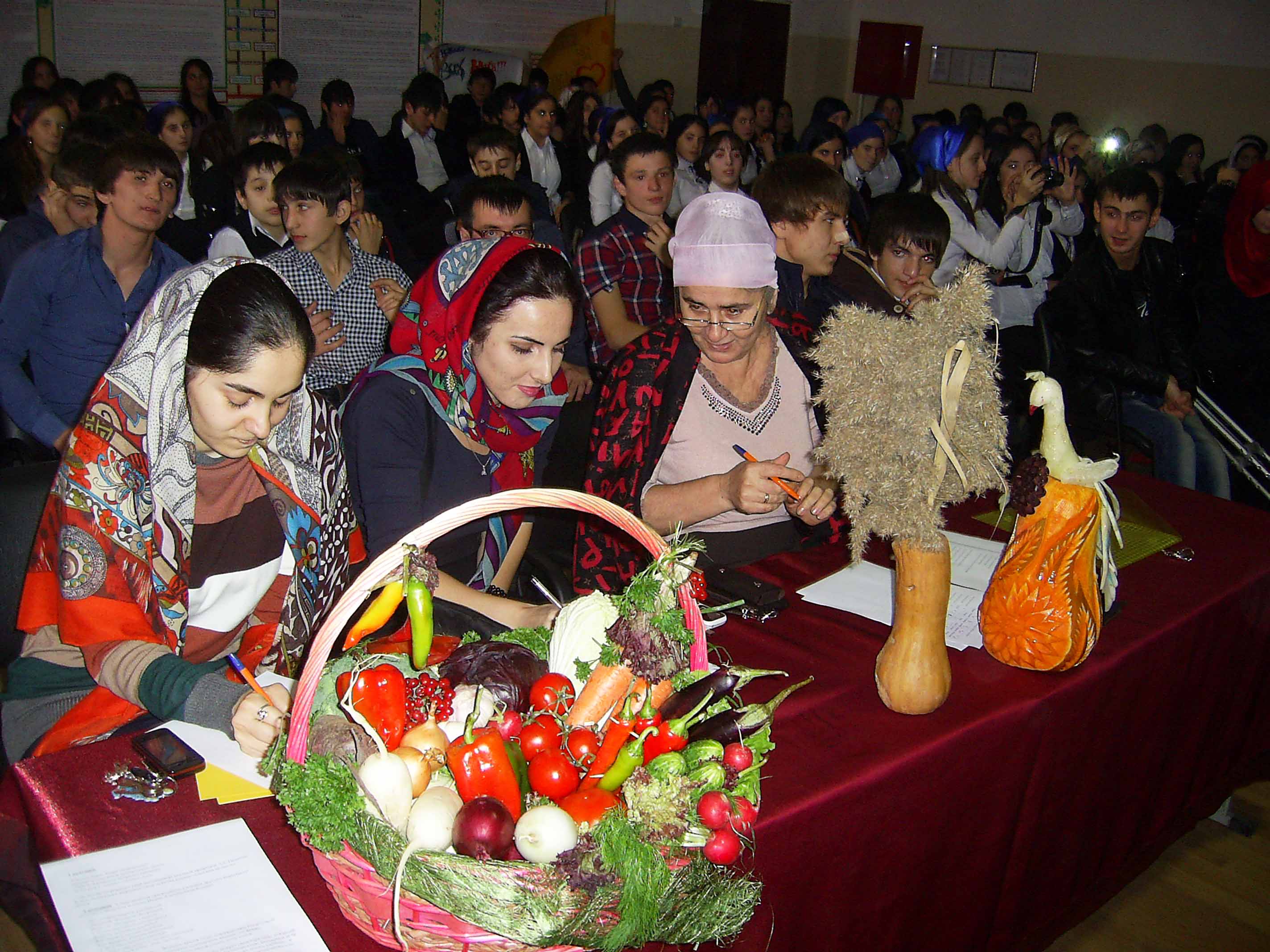 Девочки подготовили презентации о себе, которые смотрел на большом экране и оценивал своими бурными аплодисментами весь зал. Конечно же, итоги подводили члены компетентного жюри, в состав которого вошли директор школы М.Ш. Газиева и учителя английского языка Х.В. Садуева и А.С. Керимова. Именно им и предстояло такое сложное решение – определить мисс Осень-2012.