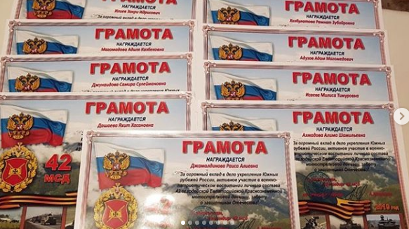20.07.201920.07.19 г. учащиеся 3 «Г» и 4 «Б» классов выступили с концертом в составе фронтовой бригады из г. Моздок в воинской части на Ханкале.Дети читали стихи,пели песни.Учащиеся нашей школы и кл .руководитель Джамалдинова Р.А , были награждены грамотами за огромный вклад в дело укрепления Южных рубежей России, активное участие в военно-патриотическом воспитании личного состава 42 гвардейской Евпаторийской Краснознаменной мотострелковой девизии, заботу о защитниках Отечества. Также, нашим учащимся было предложено посмотреть как устроена солдатская столовая и попробовать солдатский обед.